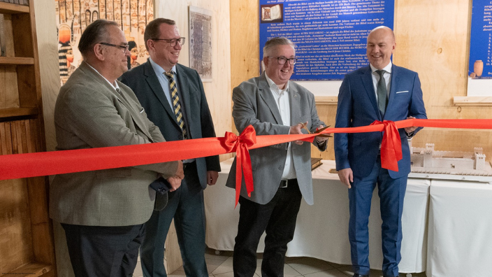 Am späten Sonntag Nachmittag war ich noch bei der Evangeliums-Christen-Baptistengemeinde Sankt Augustin in #Mülldorf eingeladen. Ich durfte hier offiziell eine #Bibel-Ausstellung eröffnen, die noch bis zum 19. Oktober 2025 zu sehen ist. Das rote Band war schnell durchgeschnitten. Anschließend habe...