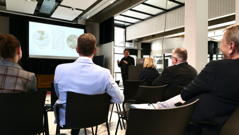 Abschluss des Tages bildete ein Besuch des New Regional Bauhaus (NRB) in Heerlen. Das NRB versteht sich als grenzüberschreitendes Forum für Forschung und Wissenstransfer. Es verbindet Städtebau und Planung mit Themen wie Nachhaltigkeit, Energiewende und Kreislaufwirtschaft. Gemeinsam mit der Universität Maastricht und der Zuyd Hogeschool bildet die RWTH Aachen eine grenzüberschreitende Wissensregion – getragen von vier Säulen: Forschung, Lehre, Projekte und Veranstaltungen.